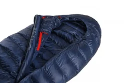 En complément du garnissage de qualité, l’enveloppe externe et interne est en tissu Pertex Quantum DWR qui a des propriétés déperlantes et coupe-vent. Les compartiments en forme de V permettent de séparer le garnissage du dessus et du dessous et de garder en place le duvet.