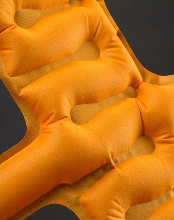 Les zones du matelas non sollicitées lorsqu’on est couché ont étés supprimées. Ce système présente l’intérêt de laisser le gonflant du sac de couchage prendre tout son volume dans les zones vides. Les capacités thermiques du duvet restent optimales. Ces zones vides appelées poches « loft » emprisonnent la chaleur.